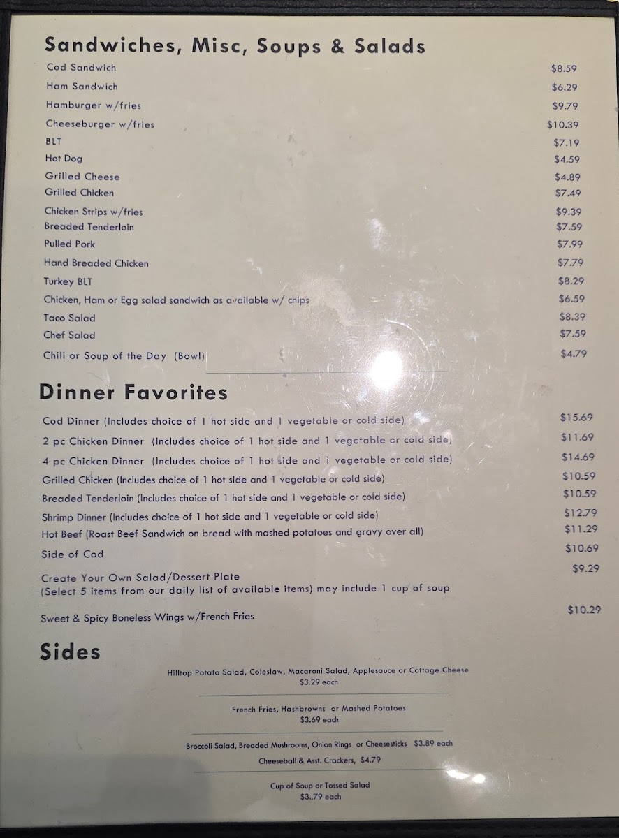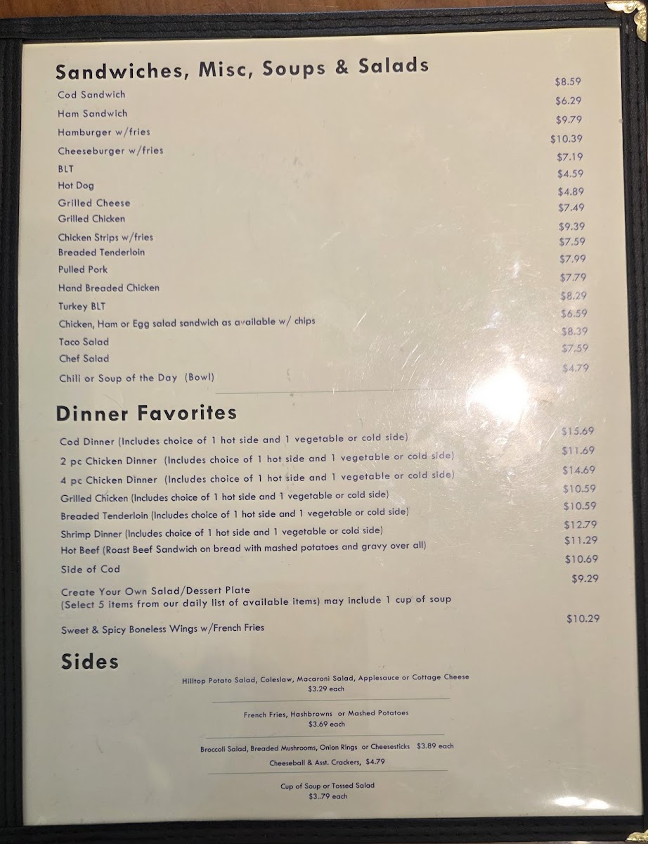 If you find yourself at 300 Wayne St in Middlebury, Indiana, you’ll want to take a good look at The Hilltop Restaurant Menu before you even decide what to order, because there’s a lot to take in. The selection feels comforting right away - the kind of dishes that remind you of home, but done just a little better than you’d expect. From hearty breakfast plates loaded with eggs, pancakes, and sizzling bacon to satisfying lunch and dinner classics, there’s something here for every appetite.